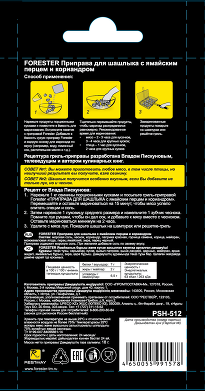 Каталог » ТУРИЗМ » Для пикника » Приправа FORESTER для шашлыка с ямайским перцем и кориандром