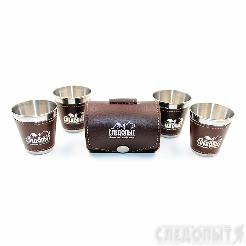 Рюмка СЛЕДОПЫТ 60 мл, в кожаной тубе, рюмки в доп. кожаном оплете (4 шт.)/200/