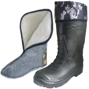 Мужские сапоги из ЭВА (этиленвинилацетат). Отличается высокой морозостойкостью и эластичнотью. Затяжная манжета выполнена из водоотталкивающей ткани, что препятствует попаданию снега во внутрь сапога. Комплектуется утеплителем, изготовленным с применением натурального меха, что позволяет находится на морозе до -400С. Вес 700гр.