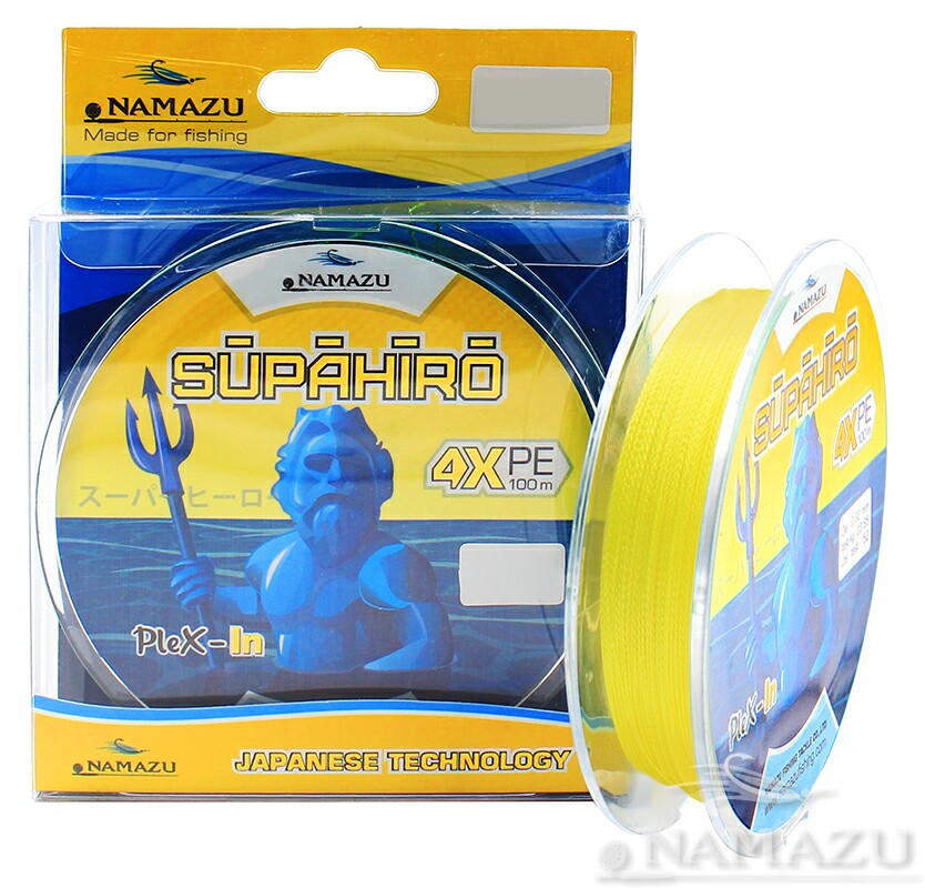 Шнур плетеный Namazu "Supahiro" 4Х, L-100 м, d-0,1 мм, test-3,57 кг, желтый/100/300/