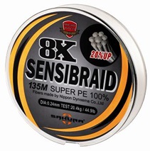 *SENSIBRAID 8Xимеет 8-ми жильное, чрезвычайно плотное плетение « Micro Pitch », содержащее 32 плетения на дюйм из нитей Haut Module Nippon SUPER PE 100 %.