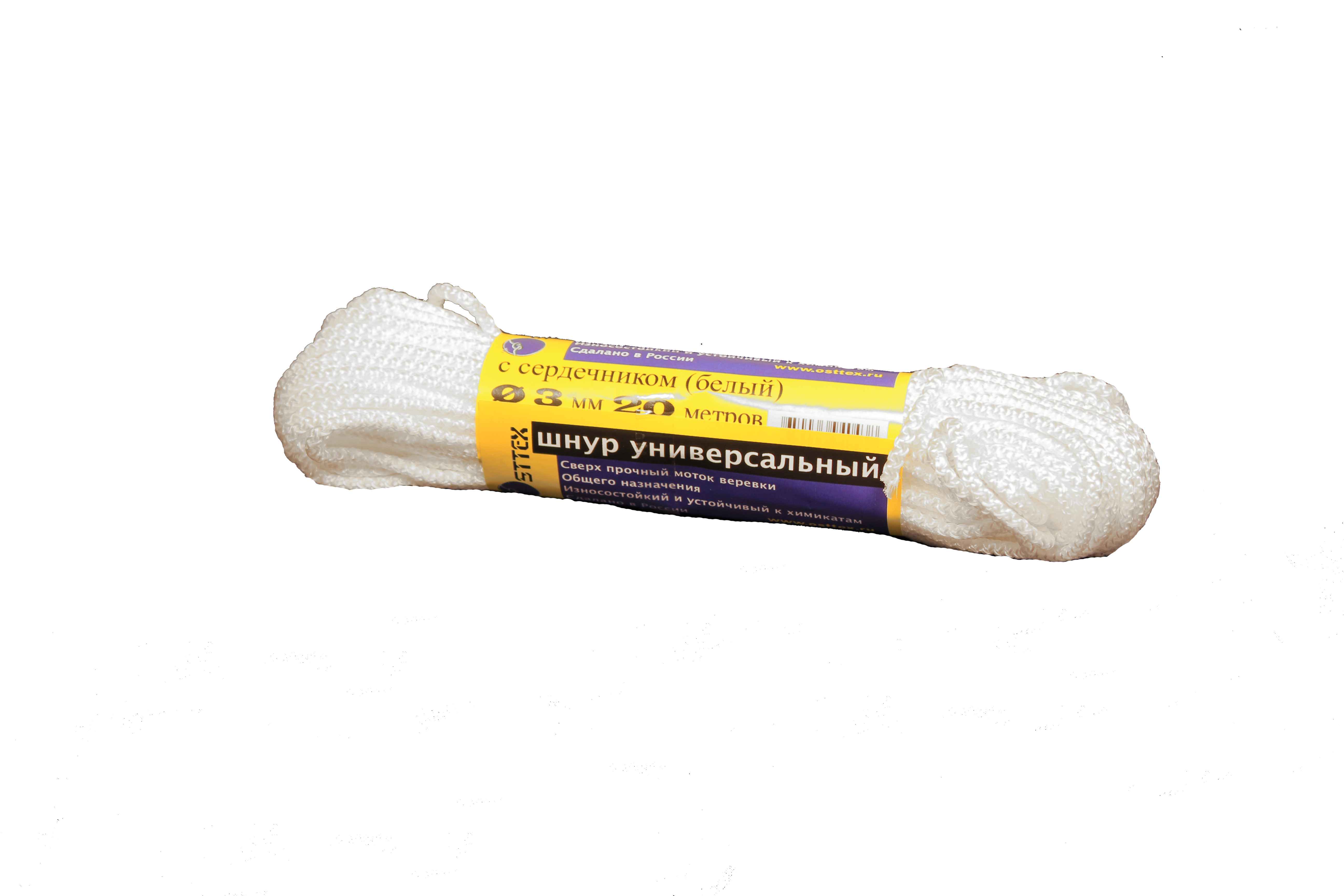 Шнур универсальный с сердечником (полипропилен) 3,0мм (20м)(белый) (К)