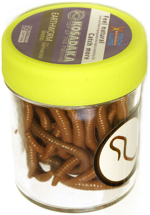 Силиконовая приманка Kosadaka Земляной червь тонущ., коричневый, запах червя (банка 18г)