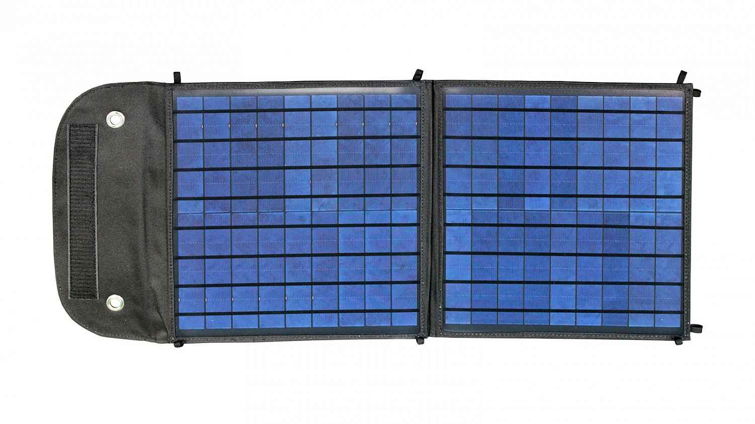Модель предназначена для зарядки устройств напряжением 5V. Это любые смартфоны, гаджеты, фонари, аккумуляторы, пауэрбанки и т.д. Модель имеет 2 USB выхода, благодаря которым можно подзаряжать два девайса одновременно. Солнечная панель изготовлена из кремниевых поликристаллических пластин. Специальная подложка из прочного PET материала надежно фиксирует фотоэлементы, предотвращая от повреждения во время эксплуатации. Внешний чехол из материала Oxford 600 с влагозащитным PU покрытием позволяет складывать панель как книжку для удобного и надежного хранения. На чехле предусмотрены люверсы для подвески в различных положениях. В комплект входят 4 карабина. Также имеется кармашек для размещения проводов или небольших гаджетов. Мощность: 20 Вт. Напряжение: 5 В. Макс. ток заряда: 2,1А / 2,5А Размер в сложенном виде: 35 х 33 х 2 см Размер в разложенном виде: 35 х 80 х 1 см * Срок службы фотоэлементов панели 25 лет.