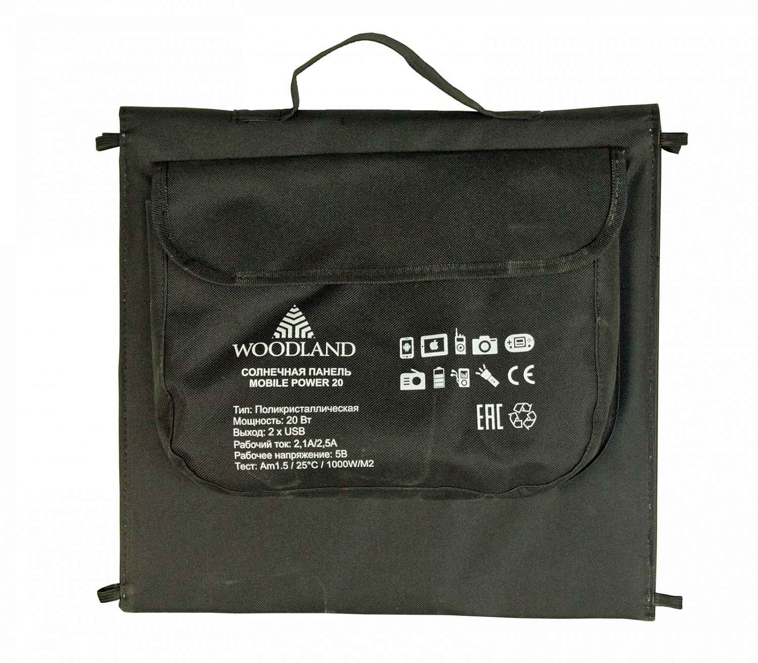 Каталог » ЭХОЛОТЫ, КАМЕРЫ » Электроника » Солнечные панели » Солнечная панель портативная Woodland Mobile Power 20W