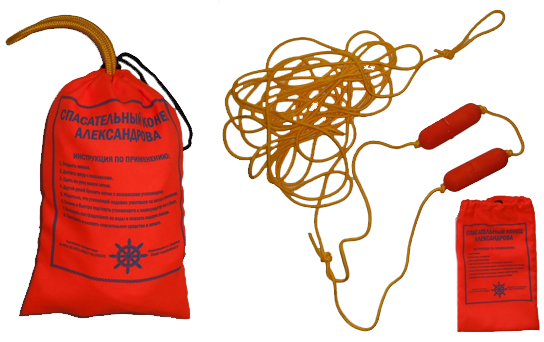 Представляет собой полипропиленовый плетеный шнур положительной плавучести, диаметром не менее 6 мм и длиной не менее 15 м, с двумя поплавками из твердого пенопласта, окрашенными в ярко-оранжевый цвет. Спасательный конец Александрова оснащен малой и большой петлями. Спасательное средство упаковано в ярко-оранжевый мешок с написанной на нем инструкцией по применению.