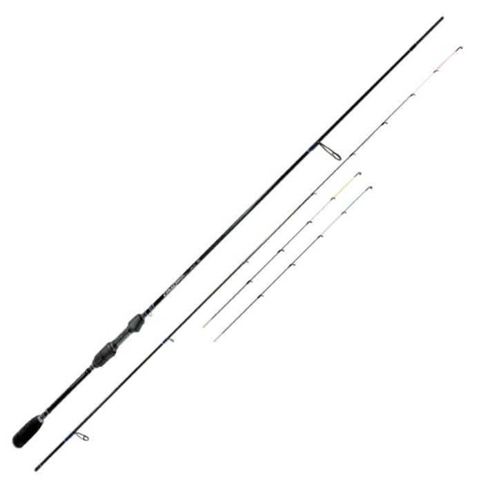 В комплект спиннинга входит тубус с тремя «квивертипами». Самый мощный, с верхним тестом до 8 граммов, делает удилище «универсалом» класса «лайт», а самая мягкая вершинка превращает Стилет Нано в отличный инструмент для ловли на мормышку. Для приманок с весами от 2 до 4 граммов используется вершинка средней жесткости. При этом средняя и комлевая части спиннинга довольно мощные и позволяют вываживать приличную рыбу. Для удобства ловли верхние части «квивертипов» окрашены в яркие цвета.