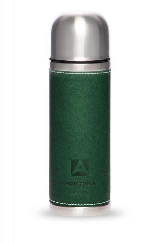 Термос Арктика (питьевой) в кожаной оплетке, 108- 500 (зеленый), 500 мл