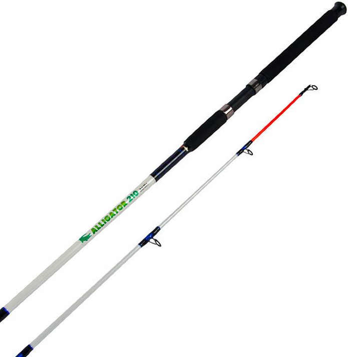 Удилище Helios Alligator 210 (2.1м; 0-200г) Мощное универсальное стеклопластиковое удилище длиной 2,1 м. Легкое, но несмотря на свой небольшой вес, обладает большим запасом прочности и подходит для ловли крупной рыбы. Можно использовать как в качестве спиннингового удилища, так и в качестве донной удочки. С помощью данного спиннинга можно забрасывать тяжелую приманку или кормушку на большие расстояния. Удобная рукоятка из ЭВА. Рекомендуется использовать как при ловле с берега, так и для ловли с лодки.