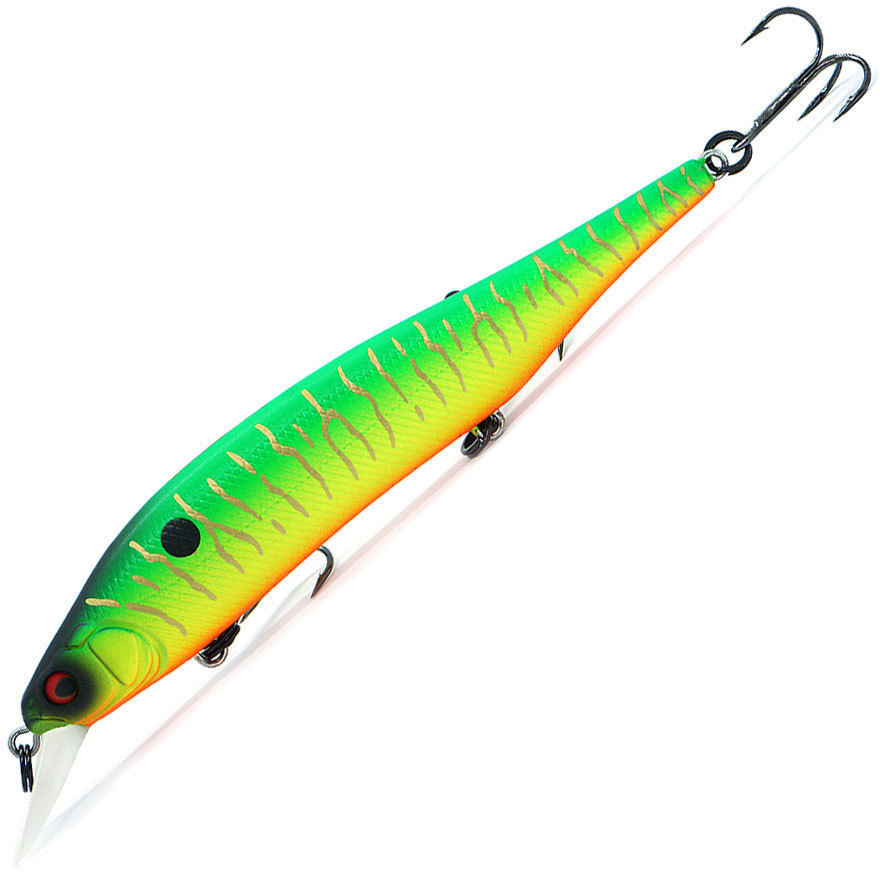 Воблер Kosadaka Shinner XS 115SP (14.6г) MHT Воблер Kosadaka Shinner XS 115SP – отличная приманка для ловли щуки и матерого окуня на глубине около метра. Геометрия минноу довольно сложной формы придает игре приманки в толще воды непередаваемую уловистость, воблер настолько естественно ведет себя в водной среде, что соблазняет даже самого ленивого хищника. Внутри приманки расположена система дальнего заброса, одновременно являющаяся и акустической системой, создающей не слишком громкие привлекательные звуки, особенно хорошо воздействующие на уже наколотого, осторожного, хищника, далеко распространяемые в воде и дополнительно соблазняющие хищную рыбу. Воблер имеет стойкое натуралистичное лакокрасочное покрытие, долго сохраняющее свою привлекательность, надежные мощные заводные кольца, способные противостоят крупной рыбе и острые прочные тройники, качественно засекающие и удерживающие хищника. При равномерной проводке воблер не раскрывает все свои замечательные возможности, хотя и привлекает хищника. А при разнообразных вариантах неравномерной – проводке с остановками и твичинге, демонстрирует максимальную уловистость. Воблер соблазнительно покачивает бочками во время приостановок проводки, при резком подергивании снастью разворачивается почти под прямым углом, эффектно выставляя бока, во время остановок подмотки оснастки зависают на месте, активно роллингуя – даже самая пассивная и сытая щука не может устоять против такого соблазна, и набрасывается на приманку.