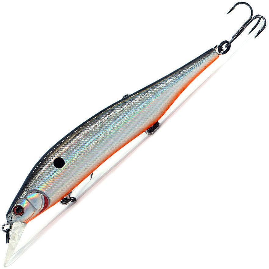 Воблер Kosadaka Shinner XS 115SP (14.6г) GT Воблер Kosadaka Shinner XS 115SP – отличная приманка для ловли щуки и матерого окуня на глубине около метра. Геометрия минноу довольно сложной формы придает игре приманки в толще воды непередаваемую уловистость, воблер настолько естественно ведет себя в водной среде, что соблазняет даже самого ленивого хищника. Внутри приманки расположена система дальнего заброса, одновременно являющаяся и акустической системой, создающей не слишком громкие привлекательные звуки, особенно хорошо воздействующие на уже наколотого, осторожного, хищника, далеко распространяемые в воде и дополнительно соблазняющие хищную рыбу. Воблер имеет стойкое натуралистичное лакокрасочное покрытие, долго сохраняющее свою привлекательность, надежные мощные заводные кольца, способные противостоят крупной рыбе и острые прочные тройники, качественно засекающие и удерживающие хищника. При равномерной проводке воблер не раскрывает все свои замечательные возможности, хотя и привлекает хищника. А при разнообразных вариантах неравномерной – проводке с остановками и твичинге, демонстрирует максимальную уловистость. Воблер соблазнительно покачивает бочками во время приостановок проводки, при резком подергивании снастью разворачивается почти под прямым углом, эффектно выставляя бока, во время остановок подмотки оснастки зависают на месте, активно роллингуя – даже самая пассивная и сытая щука не может устоять против такого соблазна, и набрасывается на приманку.